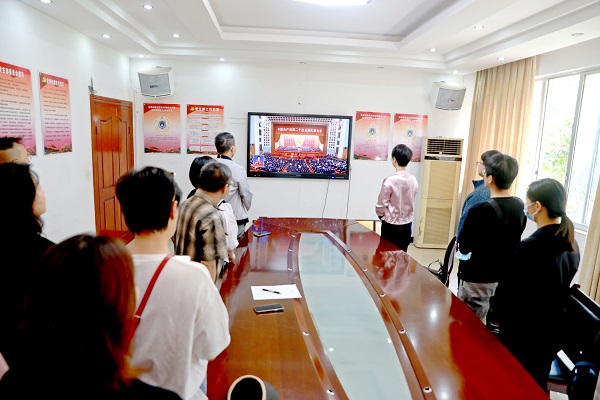 上午10时,当雄壮的国歌声在人民大会堂奏响时,管理处全体干部职工庄严肃立,跟随大会直播画面齐唱国歌,为已故老一辈无产阶级革命家和革命先烈默哀。习近平总书记代表第十九届中央委员会向党的二十大所作报告,掌声一次次回荡在雄伟的人民大会堂。在近两个小时的报告过程中,管理处全体干部职工专心聆听报告中阐述的过去五年和新时代十年的伟大变革,科学谋划未来五年乃至更长时期党和国家事业发展的目标任务和大政方针。
