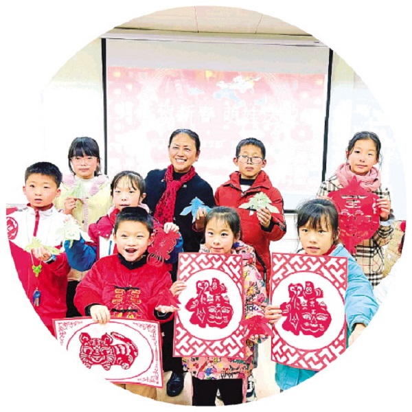 这些和新春有关的剪纸,都带着浓浓的年味。小朋友们也将剪纸作品和手写的春联送到了社区的空巢老人家中,为他们送去温暖和新春的祝福。