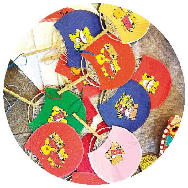 李岢的工作台上就有关于虎年的团扇,很受顾客的欢迎,已经卖出去了很多。这些虎年团扇扇形比较小,比巴掌大一些,色彩都比较艳丽,上面绘制的都是Q版老虎和福娃的形象。李岢拿起其中一把虎年团扇告诉记者,团扇基本的造型都是本土手艺人用独有的圆竹剖丝工艺制作出来的,后续的手绘加工则由她亲手完成。