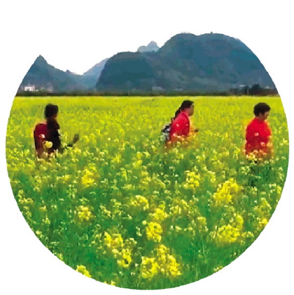 相较于去周边县度假游玩,一些在市郊游园采摘的短程项目也成为热门,桂林市周边各大农庄都摆出了花海打卡的宣传架势,特别是有些地方今年的油菜花要比往年开得早一些。