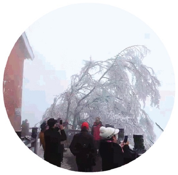 游客近日在八角寨观赏冰雪景观。 (市民朱先生供图)