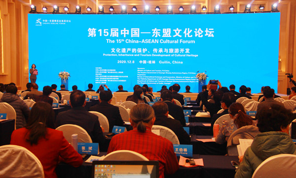 12月8日,由文化和旅游部、广西壮族自治区人民政府主办的第15届中国—东盟文化论坛在广西桂林市成功举办。来自中国、东盟各国文化部门、中国—东盟中心及东盟各国驻华使领馆的嘉宾通过线上线下相结合的形式出席了论坛大会。