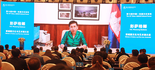 柬埔寨文化与艺术部大臣彭萨格娜通过视频致辞