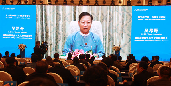 缅甸宗教事务与文化部联邦部长吴昂哥在视频致辞中表示,长期以来,中国与东盟友邦一直在持续合作,每年举办文化旅游展、研讨会、论坛和各项交流活动。论坛上,双方放眼未来,加强合作,促进和保护繁荣的文化遗产,共同构建中国—东盟患难与共的共同体。