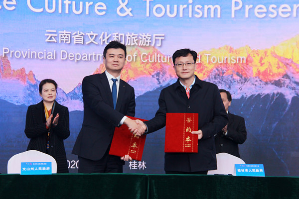 推介会上,桂林市与文山州、阳朔县与丘北县签署了缔结旅游友好城市框架协议,四地将共商合作大计、共推文旅发展。