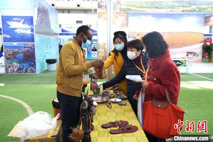 图为多哥民族工艺品吸引观众眼球。 唐梦宪 摄