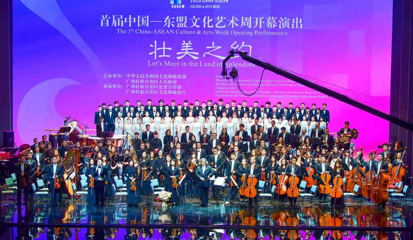 开幕演出《壮美之约》由广西演艺集团交响乐团和民族乐团携手马来西亚、越南、新加坡、印度尼西亚、菲律宾等国音乐家演出,通过“线上+线下”的创新形式,以音乐为主线,结合声乐、器乐、东盟国家民族音乐等艺术形式,成功演出交响幻想曲《歌仙·刘三姐》、北京奥运会开幕式曲目《星光》和印尼民歌《梭罗河之歌》、越南民歌《越之风》、新加坡华乐《新加坡随想曲》、菲律宾童声合唱《友谊之花长芬芳》等节目,共同奏响荟萃“中国经典”“广西特色”“东盟元素”的壮美乐章。